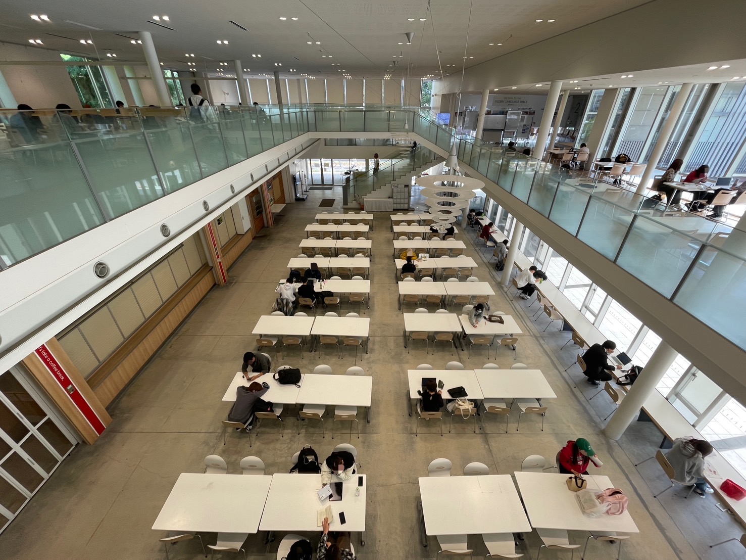 授業の空きコマなどのときに利用する人の多いこの場所、学生からは「学プラ」という名称で親しまれています。